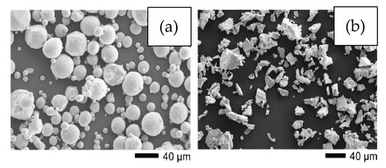 SEM images showing the morphology of (a) gas-atomized titanium powder, (b) hydride–dehydride (HDH) titanium powder. Adapted and reproduced with permission [28]. Copyright 2014, Elsevier.