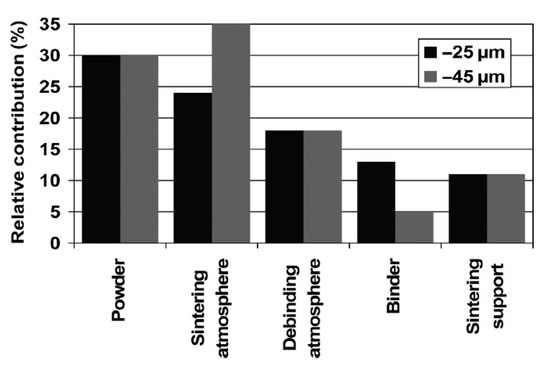 Contribution of each processing step to oxygen contamination in Ti powder subjected to MIM and sinter process. Reproduced with permission [36]. Copyright 2014, Taylor and Francis.