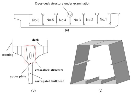 - Zhu, L.; Pan, M.; Zhou, H.-W.; Das, P.K. Transverse Strength and Reliability Assessment on Ore Carrier Cross-Deck Structures. In Proceedings of the 27th International Ocean and Polar Engineering Conference, San Francisco, CA, USA, 25–30 June 2017. [Google Scholar]
