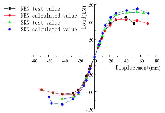 - By comparing the results of the numerical simulation and the structural test of NBN and SRN, the failure mode and the hysteresis curves were basically consistent, thus verifying the validity of the finite element analysis model and the accuracy of the finite element model parameters.
