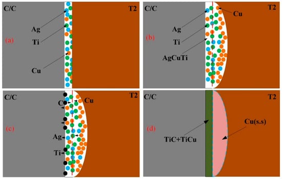 Chicago/Turabian StyleYu, Jiang, Xinglin Miao, Hongtao Zhang, Bo Wang, and Changming Qu. 2022. "The Effect of Ti Content in the Filler Powder on Interfacial Microstructure and Mechanical Properties of C/C Composites/T2-Copper Joints via Thermo-Compensated Resistance Brazing Welding" Metals 12, no. 5: 815. https://doi.org/10.3390/met12050815