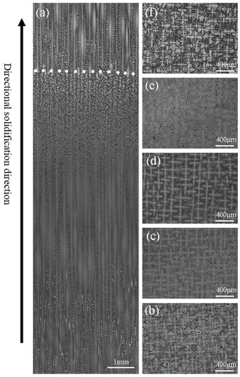 - Xuan, W.; Liu, H.; Li, C.; Ren, Z.; Zhong, Y.; Li, X.; Cao, G. Effect of a High Magnetic Field on Microstructures of Ni-Based Single Crystal Superalloy During Seed Melt-Back. Metall. Mater. Trans. B 2016, 47, 828–833. [Google Scholar] [CrossRef]