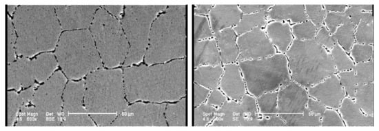It was found that, when the plunger had ultrasound with a vibration amplitude of 2.5 μm at 20 kHz, much finer grains were achieved in the pure aluminum rods (as shown in Figure 13), and the calculated grain refinement efficiency of this improved the ECAP process increased by almost 25.8% [].