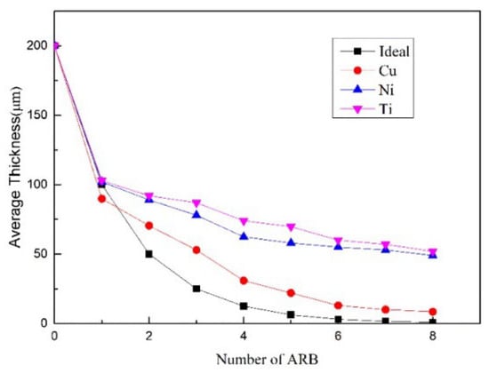 Variations of layer thickness versus the number of ARB passes reprinted with permission from Ref. []. Copyright 2022, ELSEVIER.