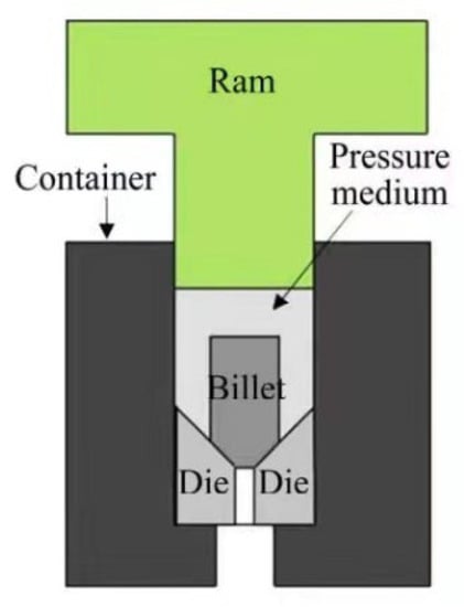 Schematic diagrams of hydrostatic extrusion reprinted with permission from Ref. []. Copyright 2022, ELSEVIER.