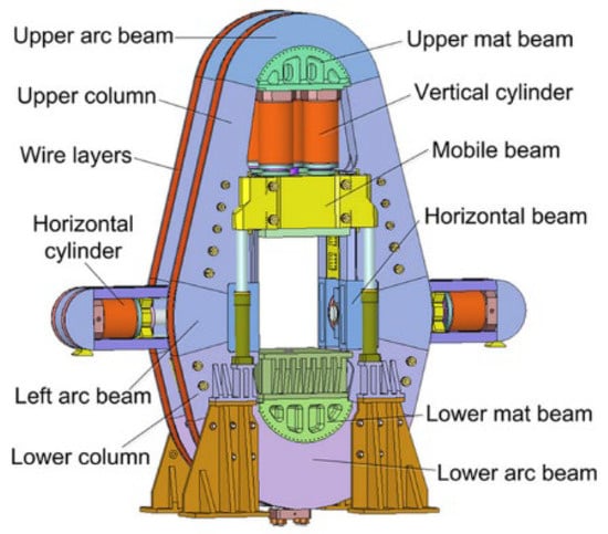 - Wang, W.; Lin, F.; Zhang, L.; Wang, X. Experimental study and finite element analysis on the frame of multi-directional forging press. Proc. Inst. Mech. Eng. Part B J. Eng. Manuf. 2016, 231, 2112–2122. [Google Scholar] [CrossRef]