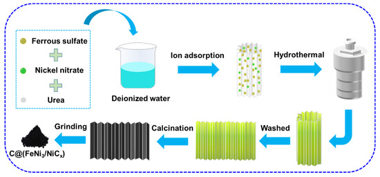 2.2. Preparation of C@(FeNi3/NiCx) Composites