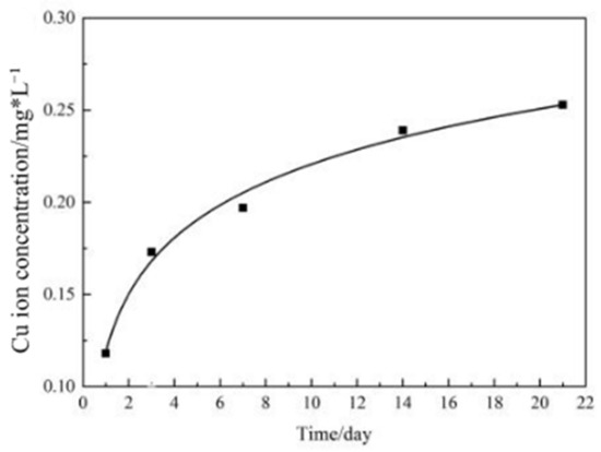 Cu ion accumulative concentration with immersion time of the Ti-3Cu-M sample.
