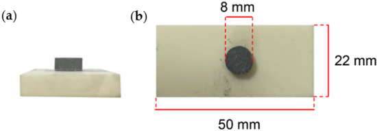 Macroscopic morphology of cylindrical material block. (a) Front view, (b) top view.