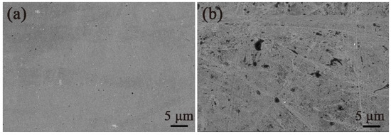 SEM images of the alloy surface (a) before and (b) after electrochemical corrosion.
