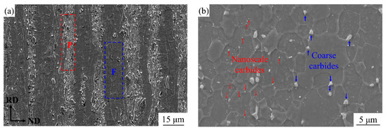 Initial microstructure of LH800 steel: (a) cold-rolled state and (b) as-supplied state. F: ferrite; P: pearlite; RD: rolling direction; ND: normal direction.