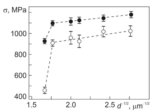 The yield stress of a large group of metals and alloys (including those obtained by SPD methods [2]) depends on the grain size in accordance with the Hall–Petch relation [19,20]: