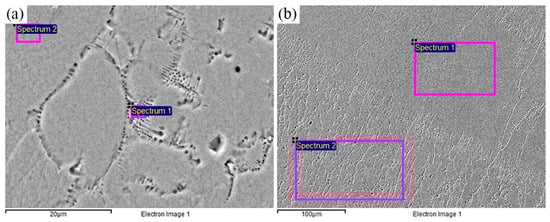 EDS characterization of (a) equiaxed grains; (b) fusion lines and layers.