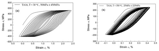 Cyclic stress-strain curve under stress control at room temperature (a) and 350 °C (b).