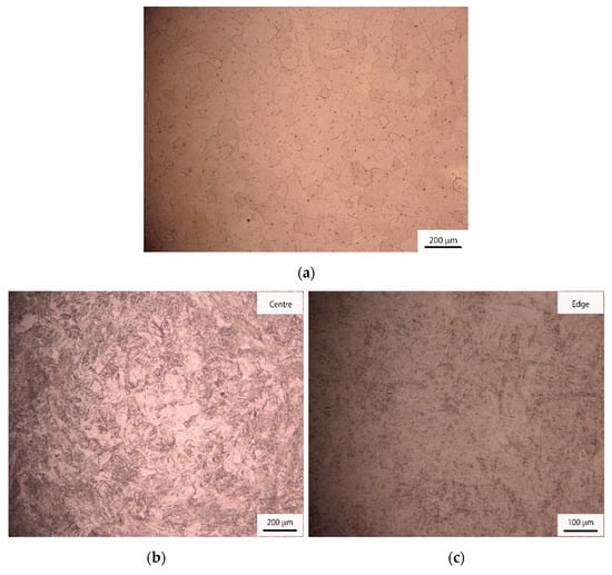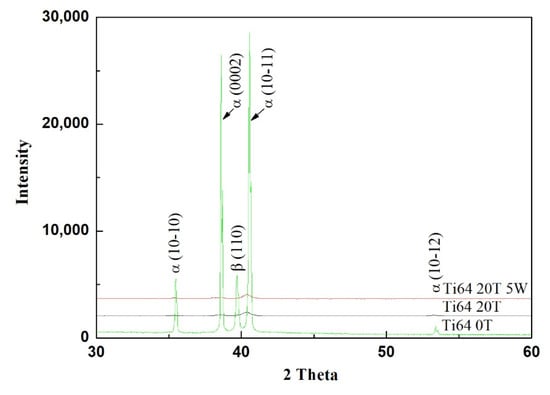 With the rapid development of modern science and technology, the introduction of new and modified materials has become attractive within materials science. Titanium alloys are a popular material for biomedical applications due to their high mechanical strength, excellent biocompatibility and good corrosion resistance [,,]. There are reports where other elements are added to Ti alloys that this may enhance their properties by producing lower densities and improved biocompatibility and corrosion resistance []. In general, the mechanical properties of high-purity Ti are lower than for titanium alloys, such as the Ti-6Al-4V alloy, and, therefore, the mechanical strength is generally improved through the application of thermo-mechanical processing.