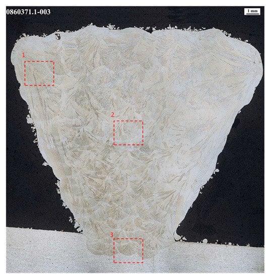 Evolution of the structure, regarding the as-deposited state, in different zones of the cross section was analyzed to define the effects of the applied heat treatments. This evolution can be defined analyzing three zones (Figure 4):