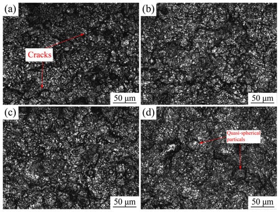 Figure 2. Surface morphology of coatings: (a) coating 1, (b) coating 2, (c) coating 3, and (d) coating 4.