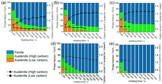 3.1. Dynamic Change in Phase Fractions and Carbon Distribution