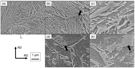 - Suzuki, T.; Ono, Y.; Miyamoto, G.; Furuhara, T. Effects of Si and Cr on Bainite Microstructure of Medium Carbon Steels. Tetsu--Hagane 2010, 96, 392–399. [Google Scholar] [CrossRef][Green Version]