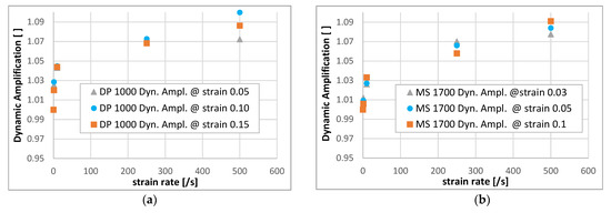 Dynamic amplification of DP1000 (a) and MS1700 (b) steels.