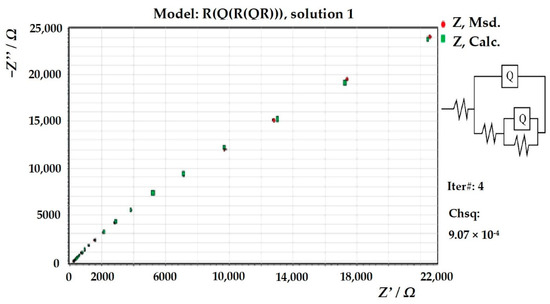 An example of the modelling of the electrical circuit is shown in Figure 5 for solution 1. According to the same principle of processing the results, modelling was performed for solution 2 and water.