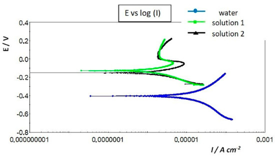 The obtained results on the corrosion behaviour of HTCS-130 tool steel in water, solution 1, and solution 2 were also confirmed using the Tafel extrapolation method. The corrosion parameters of the tested HTCS-130 tool steel are shown in Table 4.