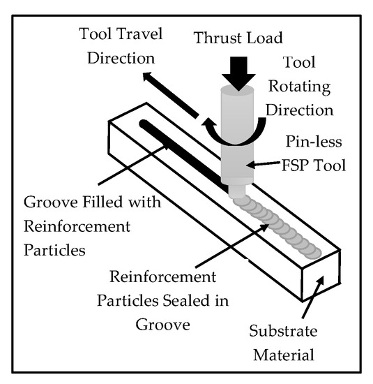 - Sharma, V.; Prakash, U.; Manoj Kumar, B.V. Surface composites by friction stir processing: A review. J. Mater. Process. Technol. 2015, 224, 117–134. [Google Scholar] [CrossRef]