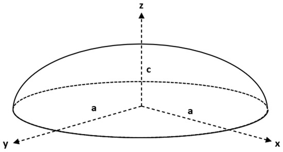 According to these results, the inertial forces acting on the bubble are significantly more important than the viscous forces, based on the high values of Re. This causes the bubble to lose its initial spherical shape when it separates from the injector and tends to flatten out, causing the bubble to deform into a spheroid shape. In the same way, the buoyancy forces are substantially more important than the surface tension forces, considering the values obtained for Eo, also contributing to the deformation of the bubbles in the same direction as the Reynolds number. Thus, it was determined that the description that best represents the bubble shape is that of a spherical cap. Schematically, the shape that the bubbles acquired during their trajectory through the molten white metal is shown in Figure 5.