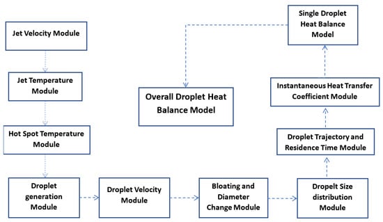 A schematic representation of incorporating modules for developing the global droplet heat transfer model.