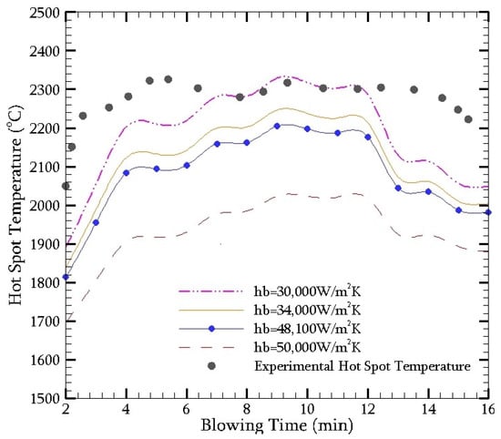 - The predicted hot spot temperature profile shows a similar trend to that of the industrial measured values and a bath heat transfer coefficient value of 33,400 W/m2 K.
