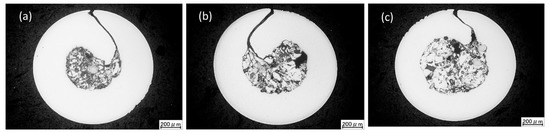 Figure 1. Cross-section of Wire 2 (a), Wire 3 (b), and Wire 4 (c).