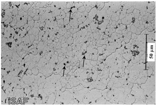 Photo of the microstructure of the AlMgSi1 alloy in a finely polished state. Mg2 Si precipitates are pointed out by arrows. (ISAF is Institut für Schweißtechnik und Trennende Fertigungsverfahren, Germany).