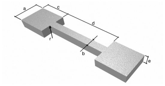Ti-6Al-4V powders used in this study had the following chemical composition reported in Table 1 (grade 23 ELI). The commercial gas-atomized powder particles had sizes ranging between 15 and 45 μm. A selective laser melting SLM280 machine (SLM Solutions AG, Lübeck, Germany), equipped with a 400 W IPG fiber laser, produced flat dog-bone creep samples with the shape illustrated in Figure 1.