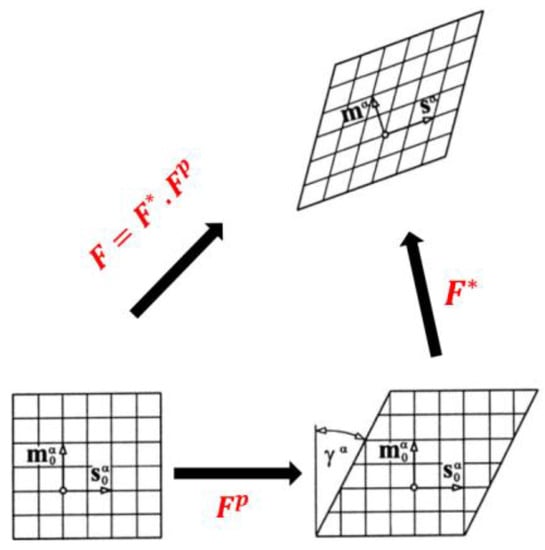 where is the deformation gradient caused by stretching and rotation of the crystal and presents the solely plastic deformation gradient. The schematic of this deformation can be seen in Figure 5: