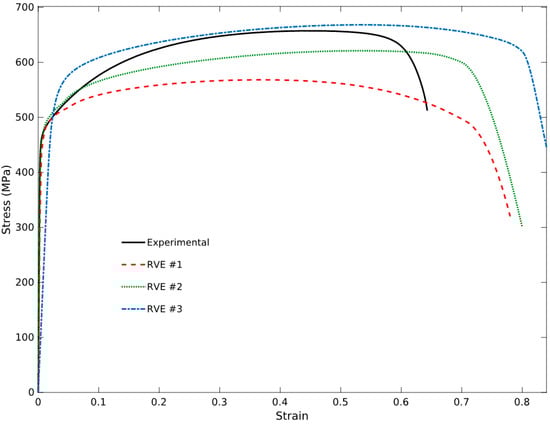 The influence of changing RVE size on engineering stress-strain curve.