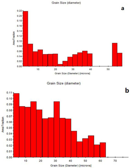 Grain size diameter for (a): ; (b): .
