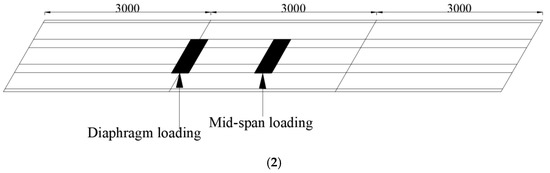 Wheel loading positions. (1) Wheel load in the transverse direction (unit: mm); (2) wheel load in the longitudinal direction (unit: mm).