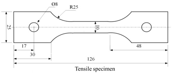 Dimension diagram of the tensile specimen.