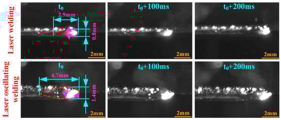 High-speed video images of the molten pool under different welding modes are captured to further explore the crack inhibition mechanism. The results of high-speed videos are shown in Figure 7. The acquiring frequency of the high-speed camera is 5000 frames per second, and the photos are captured at 200 μs intervals.