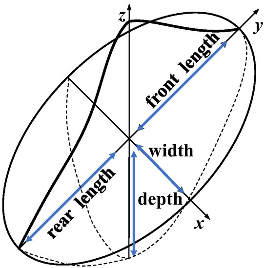 In addition, to better understand the effect of welding heat input on the welding characteristics, the correlation between welding characteristics, mechanical properties, and welding penetration depth of the T-welded joint is obtained. When the simulation was carried out, the welding voltage of 20 V, welding speed of 3 mm/s, and welding efficient of 0.75 remained the same, and the corresponding welding currents were, respectively, 100, 170, and 220 A. Simultaneously, the front length, rear length, width, and depth of the adopted heat source model of the double ellipsoid were, respectively, 1.5, 6, 2.5, and 2.5 mm, as shown in Figure 3.