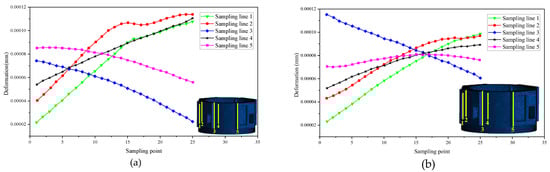 Deformation of each sampling line. (a) Deformation of each sampling line in clamping strategy 1; (b) deformation of each sampling line in clamping strategy 2.