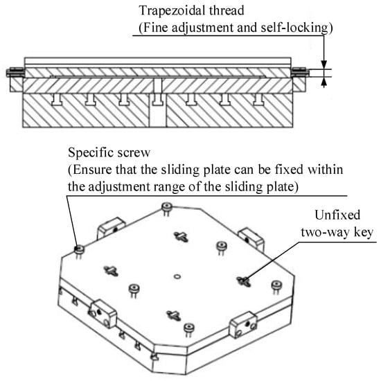 According to the design requirements of general clamping tooling for the special-shaped cabin section and the processing characteristics of the special-shaped cabin section, a general process equipment with high efficiency and easy operation was designed. It realized rapid reference adjustment of special-shaped parts on the machining center under the adjustable base plate, as shown in Figure 11.