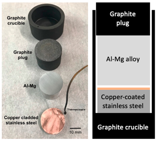 A graphite crucible was used to heat the Al-Mg and Cu-cladded stainless steel. The bonding pressure was applied by the graphite plug placed on top of the assembled sample.