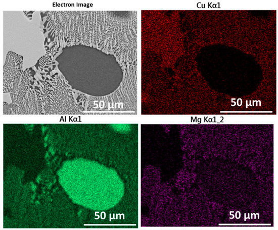The elemental maps in Figure 6 show the higher affinity of copper to magnesium than copper to aluminium. This is clear that the aluminium-rich oval phase in Figure 6 hardly contains any copper.