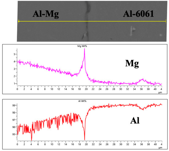 The sudden increase in the concentration of magnesium at the joint interface indicated the possibility of so-called “reverse diffusion”, where the solute diffuses towards the region with a higher concentration. This is to be studied in future work.