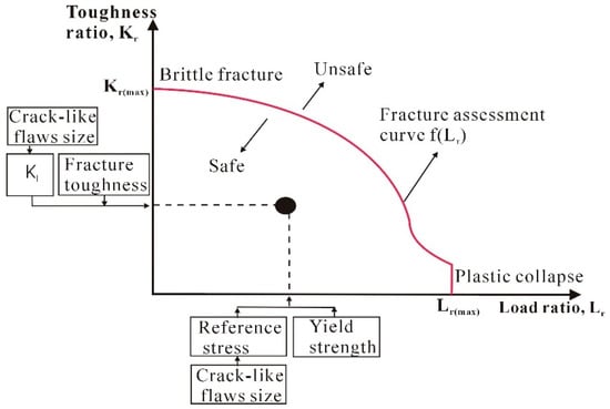 where is toughness ratio; is stress-intensity factor; is fracture toughness of the material; is load ratio; is reference stress; and is yield strength of the material. is the cutoff line of the evaluation curve, and , and is tensile strength of the material.