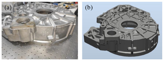 The automotive engine flywheel shell with flash/burrs (a) and the corresponding geometric model (b).