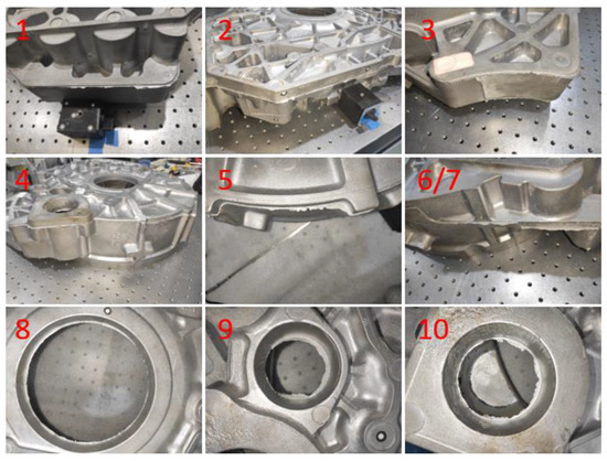 According to the above experimental steps, the first straight-line segment, the third curved segment, and the tenth circular segment were selected as typical path segments for analysis. It can be seen in Figure 13 that the flywheel shell flash and burrs were greatly removed by the robotic milling in comparison with the manual operation.