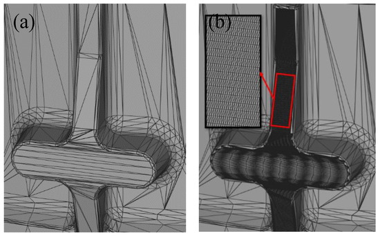 Comparison of before (a) and after (b) mesh subdivision of the flywheel shell STL file.
