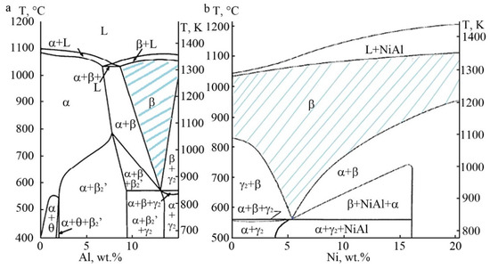 In conclusion, it should be noted that the established regularities of controlling the structure, phase transformations, and properties of the studied ternary alloys can be extended onto multicomponent alloys of these systems; additional alloying of these ternary alloys by Mn, Hf, B, C, and other chemical elements was previously used to refine the size of their grain structure [43,56,61].